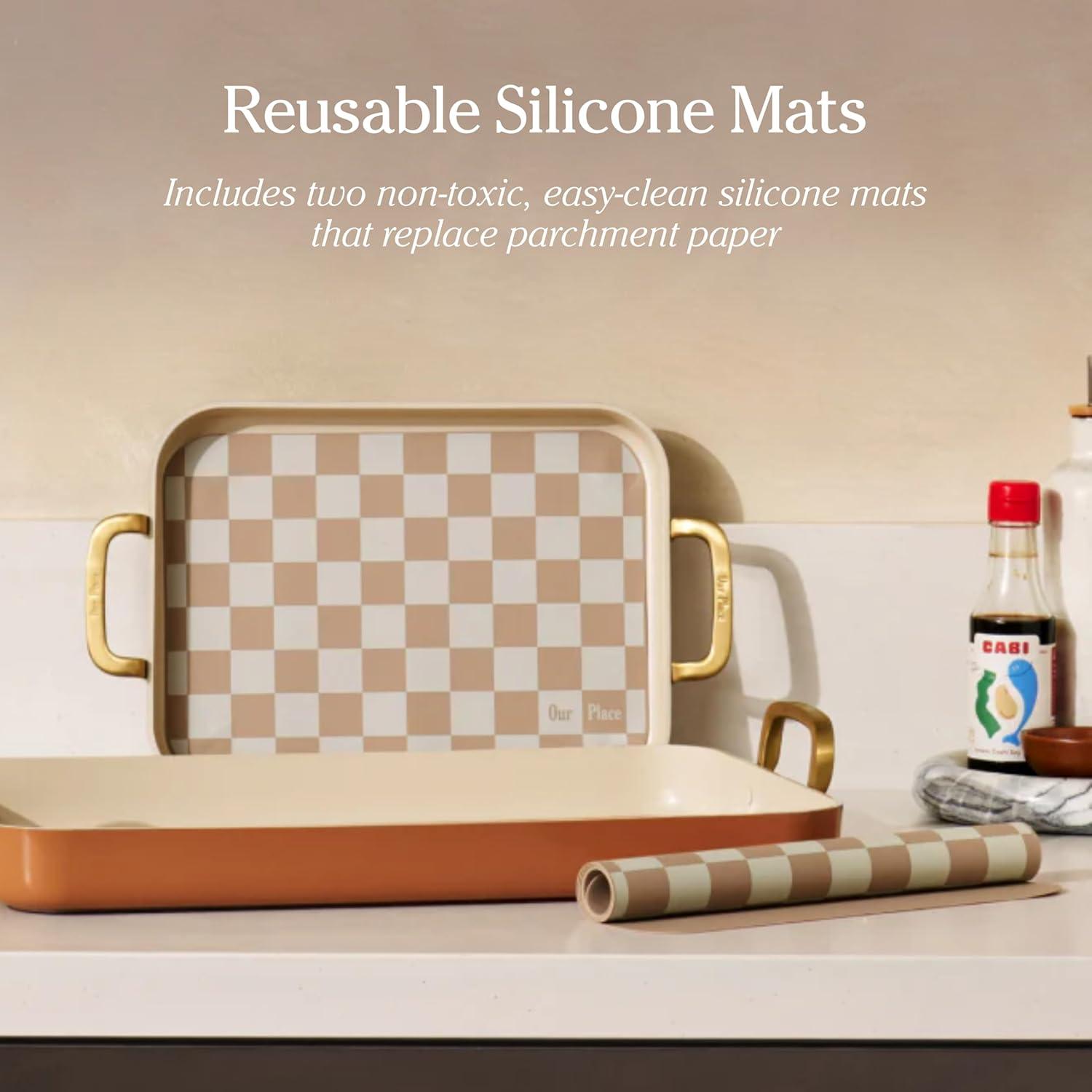 Our Place Essentials 4-Piece Griddle Pan Set | Nonstick Griddle Standard & Mini with Reusable Silicone Oven Mats | Thermakind™ PFAS-Free Nonstick, Oven Safe, Stovetop to Oven Versatility | Terracotta(Cream)