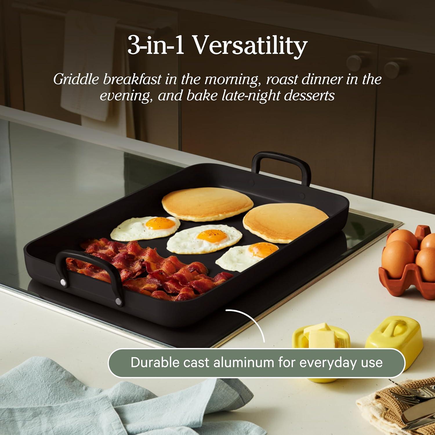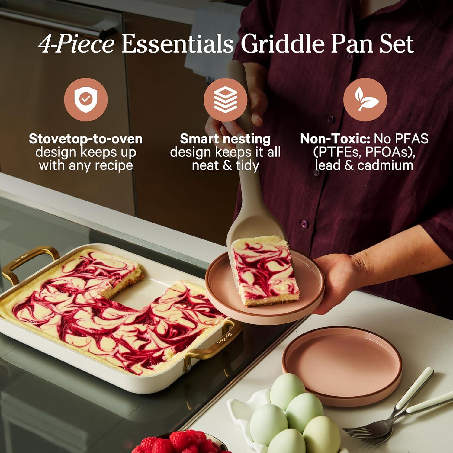 Our Place Essentials 4-Piece Griddle Pan Set | Nonstick Griddle Standard & Mini with Reusable Silicone Oven Mats | Thermakind™ PFAS-Free Nonstick, Oven Safe, Stovetop to Oven Versatility | Cream