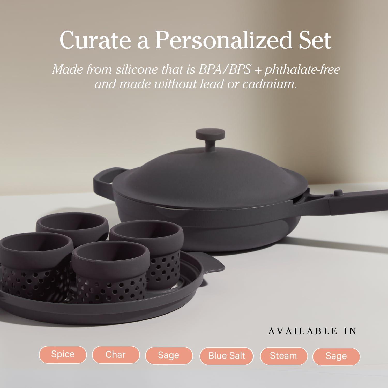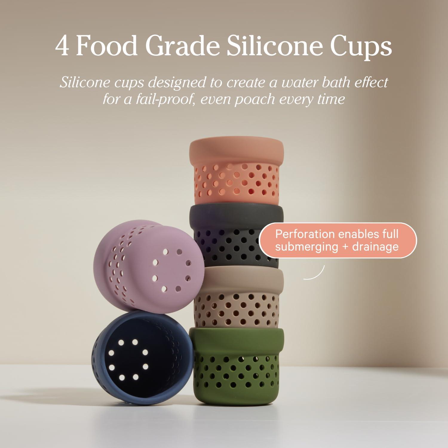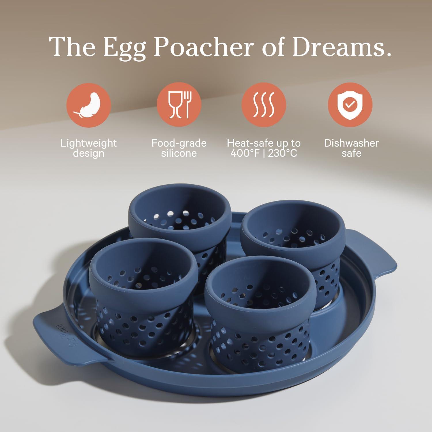 • Our Place Silicone Egg Poacher Add-On – Easy-Use Poaching Set | Fail-Proof Water Bath Design | Includes Sturdy Nylon Platter & Perforated Cups | BPA-Free, Dishwasher Safe | Blue Salt(Char)