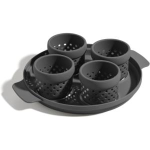 Our Place Silicone Egg Poacher Add-On – Easy-Use Poaching Set | Fail-Proof Water Bath Design | Includes Sturdy Nylon Platter & Perforated Cups | BPA-Free, Dishwasher Safe | Blue Salt(Char)