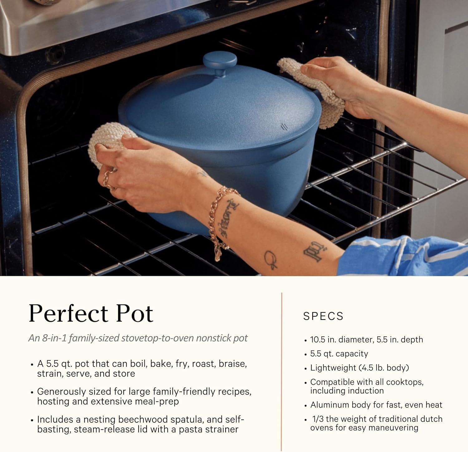 Our Place Perfect Pot – 5.5 Qt. Nonstick Ceramic Sauce Pan with Lid | Versatile Cookware for Stovetop and Oven | Steam, Bake, Braise, Roast | PTFE and PFOA-Free | Toxin-Free, Easy to Clean | Char(Blue Salt)