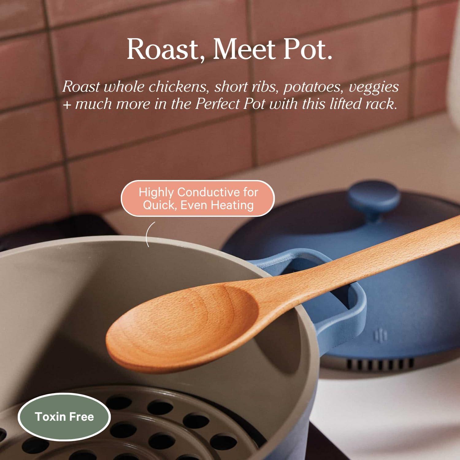 Our Place Perfect Pot Roasting Rack – 2-in-1 Custom-Fit Rack and Steamer | Toxin-Free Ceramic Coating | With Oven-Safe Silicone Feet | Char(Char)