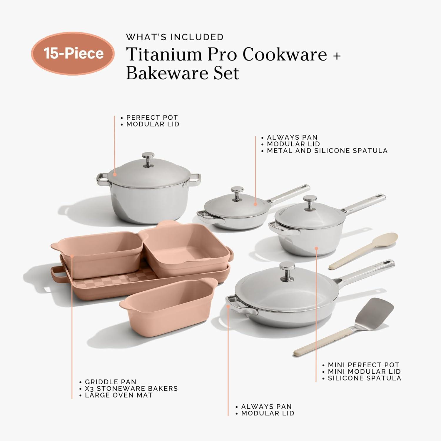 Our Place 15-Piece Titanium Pro Cookware & Bakeware Set | Tri-Ply Titanium & Stainless Steel Nonstick Fry Pans & Pots | Ceramic Nonstick Bakers & Griddle Pan | Non-toxic, PFAS-Free | Spice