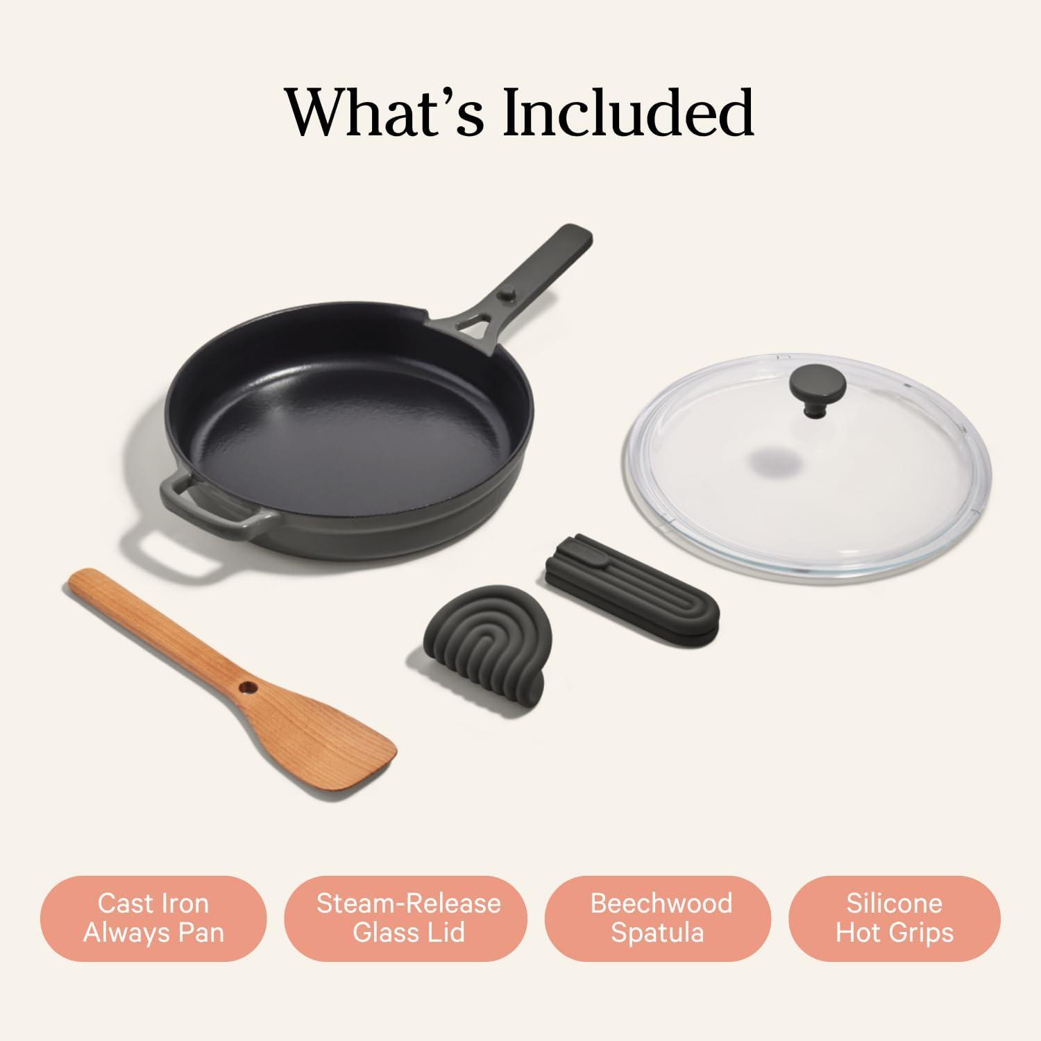 VERSATILE 8-IN-1 COOKING: The Always Pan in cast iron is a 10-inch wonder — it grills, sears, braises, fries, sautés, roasts, bakes, broils, stews, and serves, all in one!