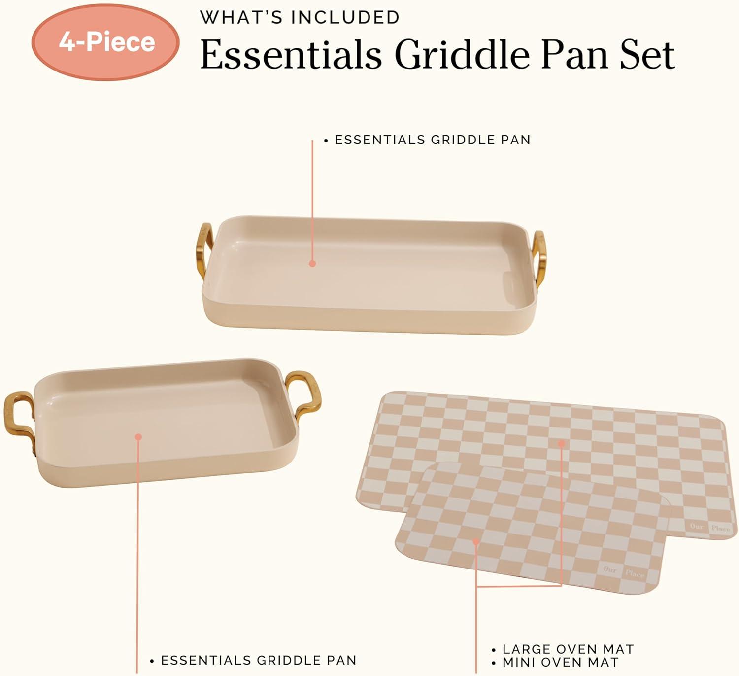 Our Place Essentials 4-Piece Griddle Pan Set | Nonstick Griddle Standard & Mini with Reusable Silicone Oven Mats | Thermakind™ PFAS-Free Nonstick, Oven Safe, Stovetop to Oven Versatility | Cream