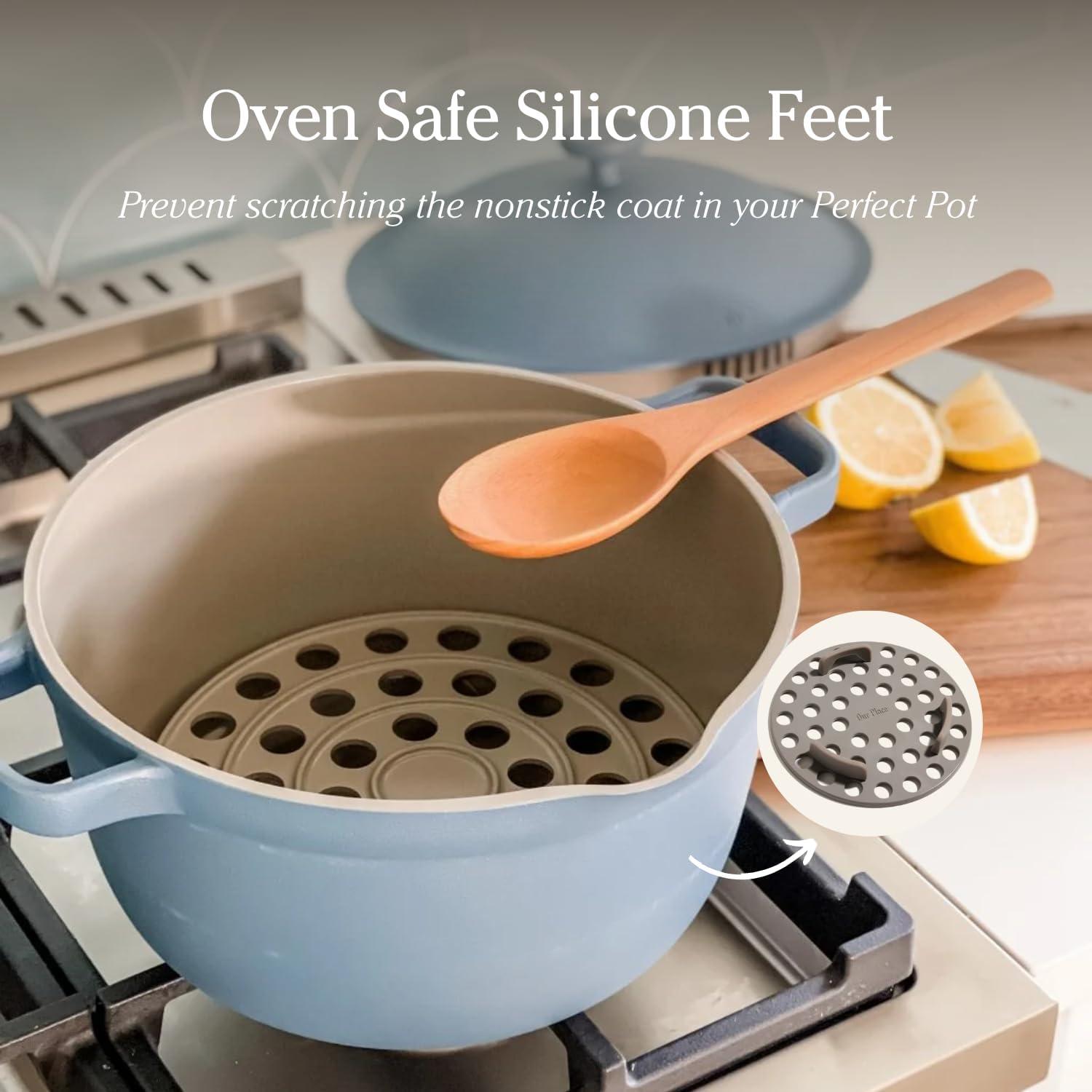Elevate your cooking experience with the Our Place Perfect Pot Roasting Rack, a versatile 2-in-1 accessory designed to maximize the functionality of your Perfect Pot. Whether you're roasting succulent chickens, caramelizing short ribs, or steaming fresh vegetables, this custom-fit rack ensures your dishes are cooked to perfection. Crafted with an innovative design, the rack promotes 360-degree airflow, leading to evenly cooked, crispy, and tender meals every time. The exclusive toxin-free ceramic coating offers a nonstick surface without the harmful chemicals found in many other cookware accessories, making your cooking healthier and cleanup easier. Not just a tool for perfect roasts, this rack doubles as an efficient steamer, adding even more versatility to your kitchen. The oven-safe silicone feet are thoughtfully designed to protect the Perfect Pot's nonstick surface from scratches, maintaining its quality and performance. Lightweight yet sturdy, the roasting rack is oven safe up to 425°F, including the silicone feet, ensuring it can handle a wide range of recipes. While the rack is easy to clean by hand, this care ensures it remains a central part of your cooking repertoire for years to come. Transform the way you cook with the Our Place Perfect Pot Roasting Rack. It's not just an accessory; it's a gateway to exploring new dishes and techniques, all while saving space and promoting healthier cooking. Make meal prep a breeze and enjoy delicious, evenly cooked dishes every time with this indispensable kitchen essential.