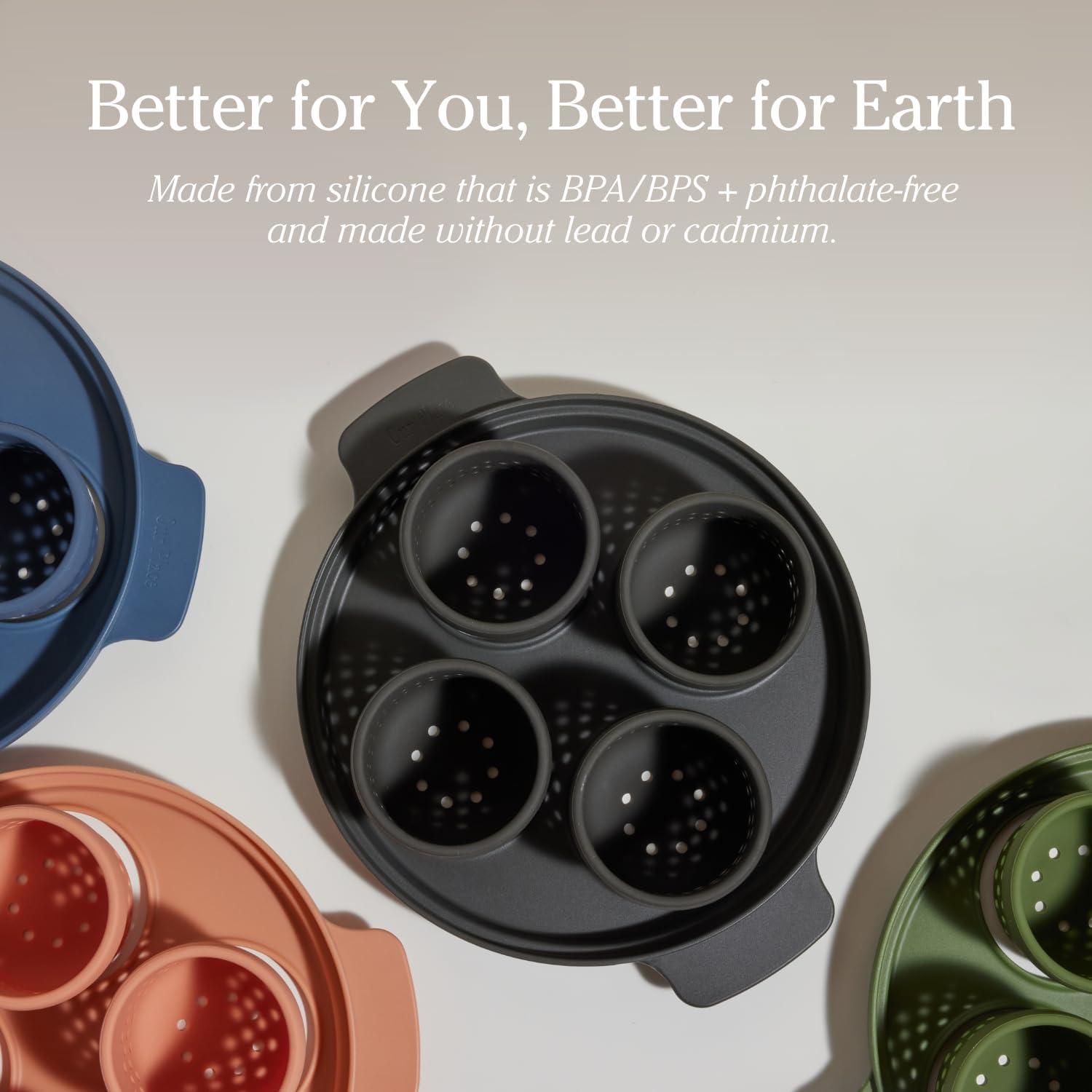 Fail-Proof Egg Poaching: Silicone cups engineered for a water bath effect, ensuring fluffy, evenly poached eggs every time.