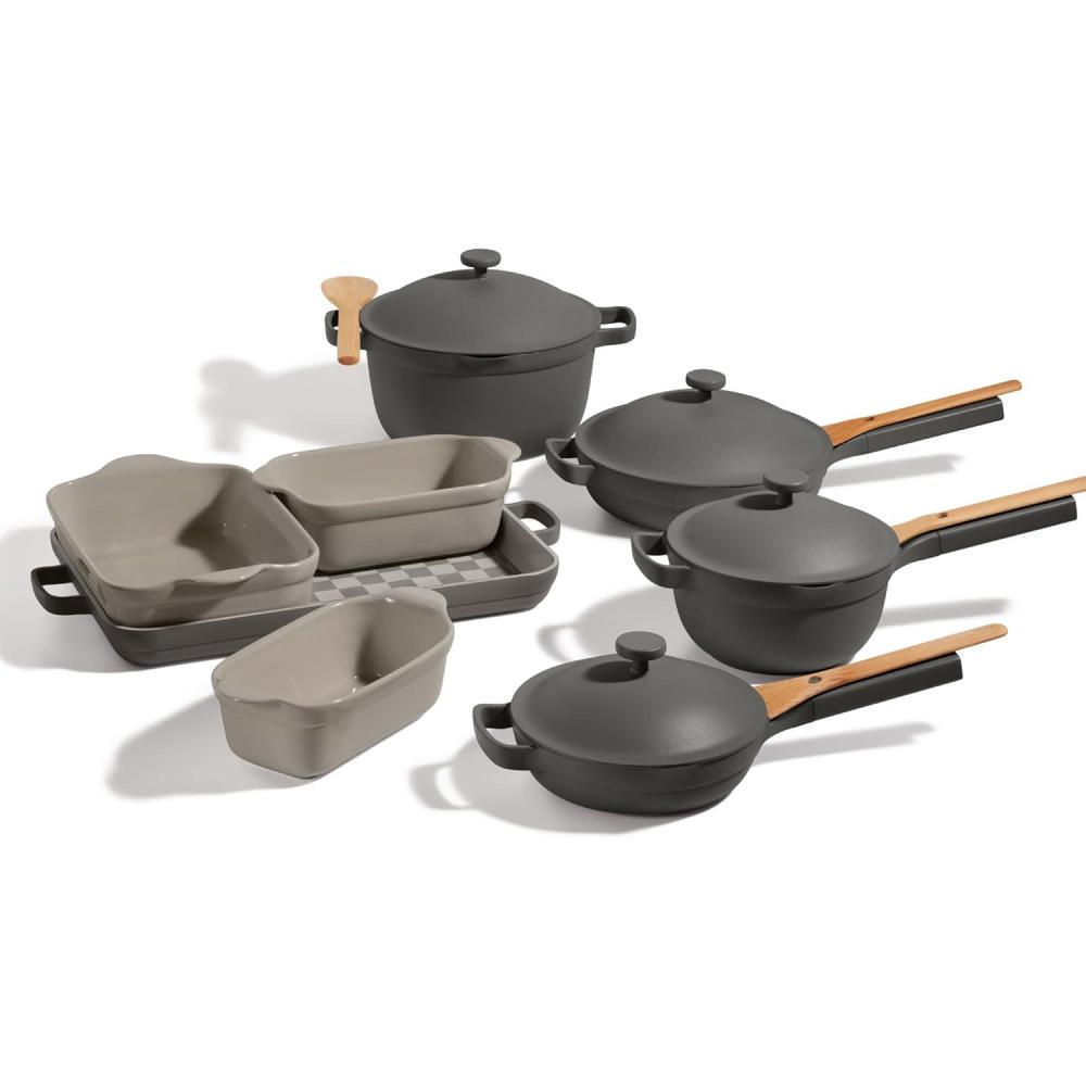 Introducing the Ultimate Cookware Set, a comprehensive culinary collection that elevates your kitchen to new heights of functionality and style. This set builds on its predecessor, the Cookware Set, featuring the same evergreen 13-piece ensemble that includes the Always Pan 2.0, Mini Always Pan, Perfect Pot, and Mini Perfect Pot (plus accessories) – with the addition of the versatile Bakeware Set: a brilliant 5-piece set including a griddle pan, bakers and an oven mat. The Ultimate Cookware Set is designed with our patented 10-in-1 multi-functionality, oven safety up to 450°F, and cookware featuring a nonstick ceramic coating free from PFAS, PTFEs, PFOAs, lead, and cadmium. Whether you're a novice in the kitchen or a seasoned chef, this set equips you with everything needed to create a wide array of bakes and cooks while maintaining a kitchen that’s time, cost and space-effective.