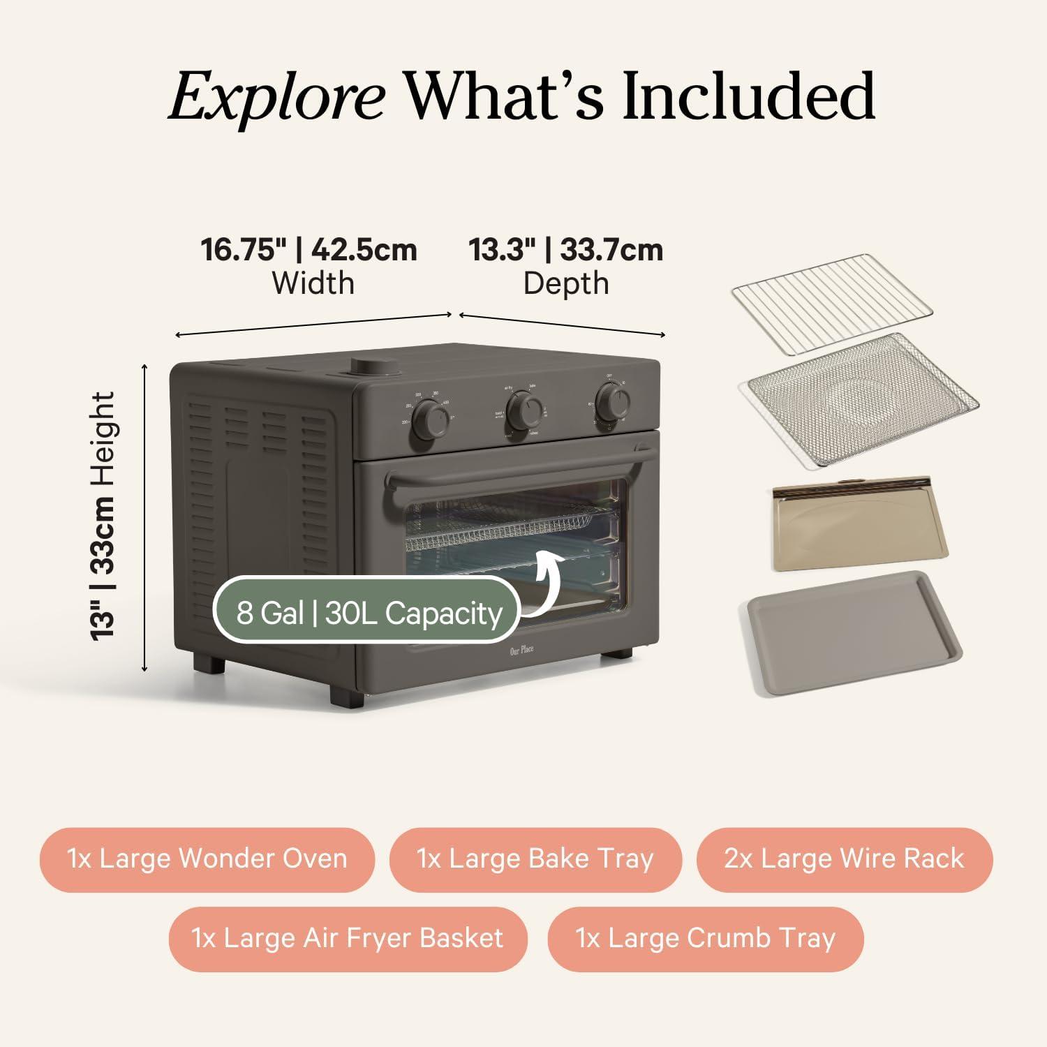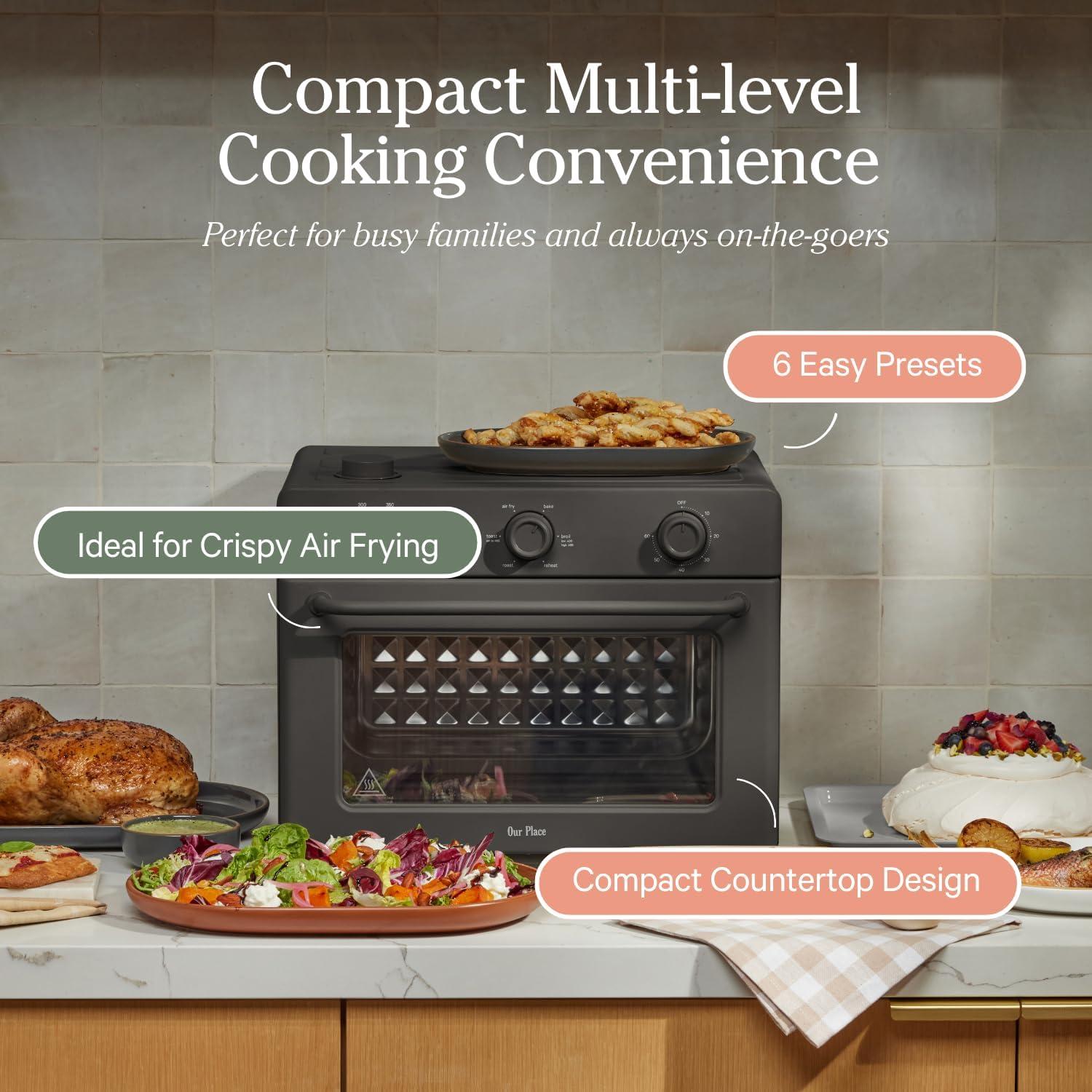 Our Place Wonder Oven | 6-in-1 Air Fryer & Toaster Oven with Steam Infusion | Compact, Countertop Friendly, Fast Preheat, Multifunctional | Air Fry, Toast, Roast, Bake, Reheat & Broil | Blue Salt(Char)