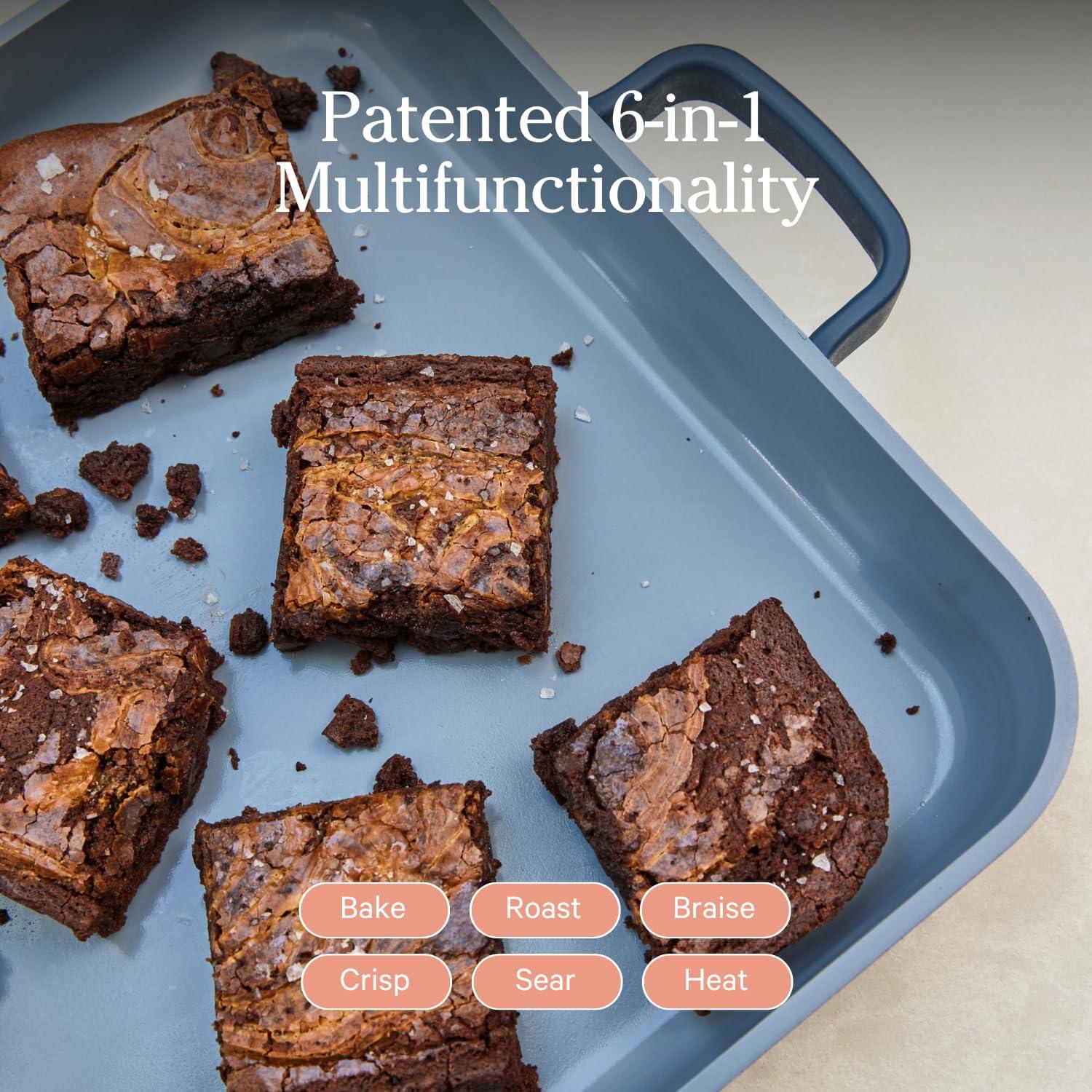 • Our Place Bakeware Set | 5-Piece Nonstick, Toxin-Free, Ceramic, Cast Aluminum Set w/Oven Pan, Bakers, & Oven Mat | Space-Saving Nesting Design | Oven-Safe | Bake, Roast, Griddle and more | Blue Salt(Char)